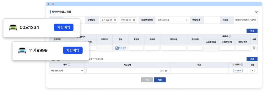 회사의 공용 법인차량의 예약을 쉽게 관리하고 운행일지를 작성해 세무조사에 대비하고 비용을 절감해보세요.